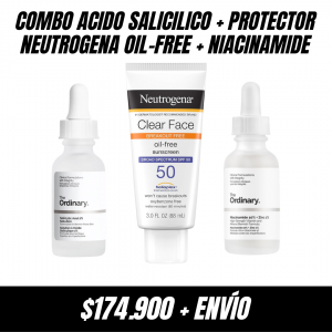 Combo Ácido Salicílico 2% 30 ml + Protector Solar CeraVe Hidratante Mineral Color 30 SPF 50 ml + Niacinamide 10% 30 ml: